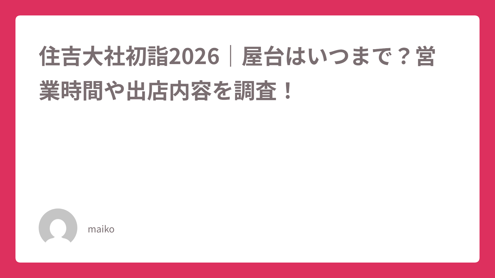 今回は住吉大社初詣2026の屋台について、出店期間、営業時間、出店内容をまとめました。