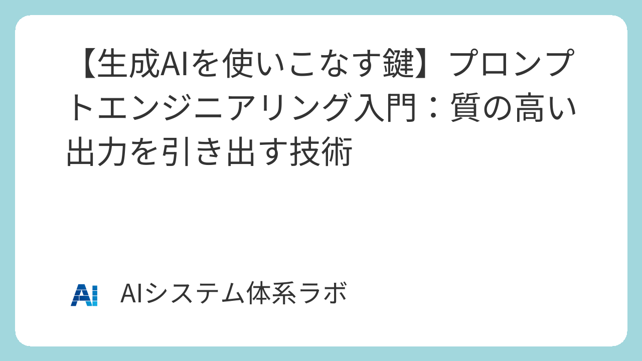 ▼AIシステムの精度を最大化する「プロンプトエンジニアリング」について知りたい方は、こちらの記事でさらに深く学ぶことができます。