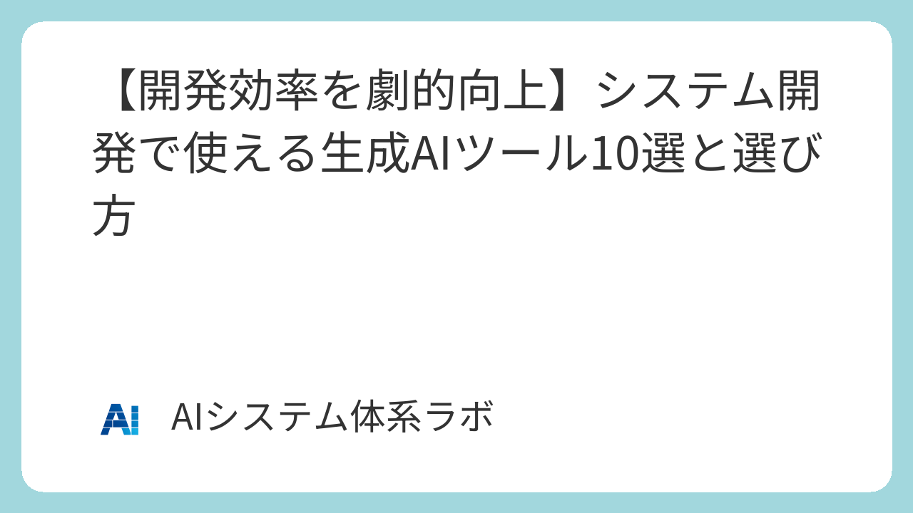 AIは、システムエンジニアの仕事を代替するのではなく、その能力を拡張し、より高付加価値な業務に集中するためのパートナーとなりつつあります。AIシステム体系ラボは、AIがシステム設計プロセスにもたらす変革の最前線を引き続き分析していきます。
