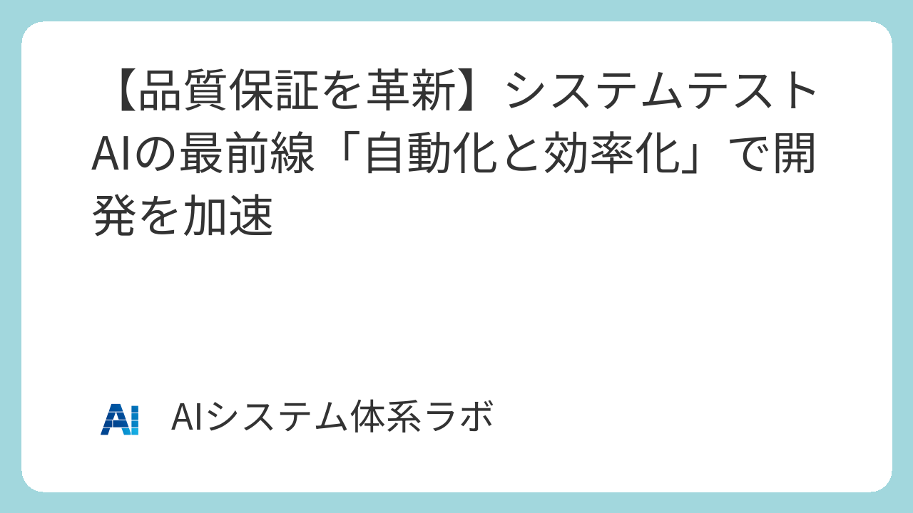 AIは、テストエンジニアの仕事を代替するのではなく、その能力を拡張し、より高付加価値な品質保証業務に集中するためのパートナーとなりつつあります。AIシステム体系ラボは、AIがシステムテストプロセスにもたらす変革の最前線を引き続き分析していきます。