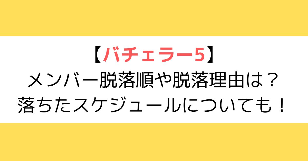 バチェラー5の脱落順は以下の通りで、なぜ脱落したのかの理由は以下の通りです。