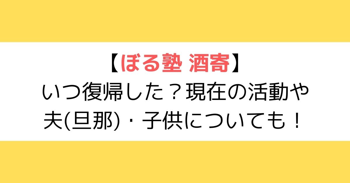 ぼる塾酒寄さんはいつ復帰したのか、現在の活動や夫(旦那)、子供についてまとめました。