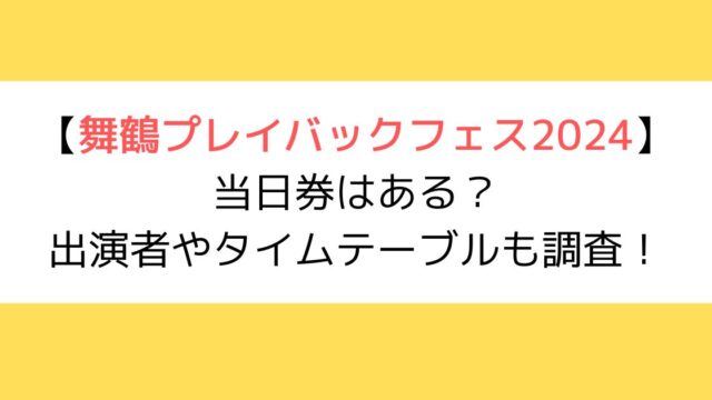 音楽フェス 舞鶴プレイバックフェス2024の当日券はある?出演者やタイムテーブルも調査!