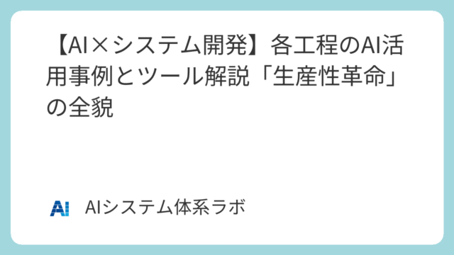 現代のシステム開発は、AI技術の急速な進化によって、かつてないほどの「生産性革命」の波に直面しています。設計書の作成からコードの記述、テスト、そして運用・保守に至るまで、システム開発のあらゆる工程においてAIツールが導入され、開発者の業務を...