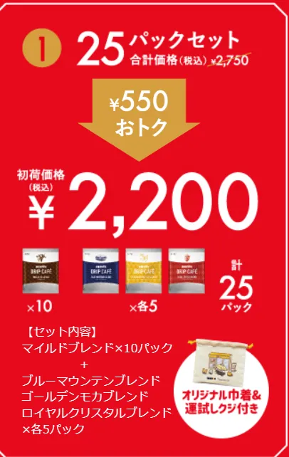 【2024】ドリップカフェセット25パック 2200円