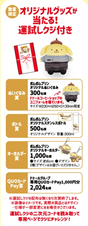 また、これら上記のすべてに数量限定でポムポムプリンのオリジナル巾着ついていきます。
