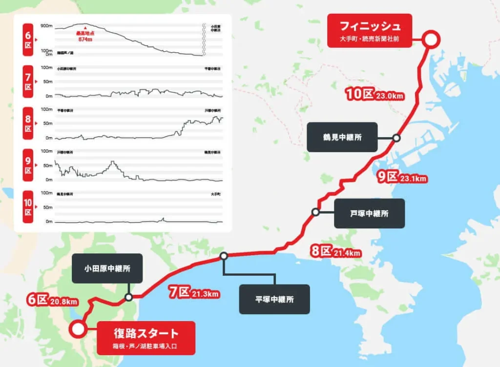 小田原市から平塚市まで、湘南の海や富士山など雄大な自然を感じながら、走りを進める復路7区ですが、起伏の激しいコースでもあります。