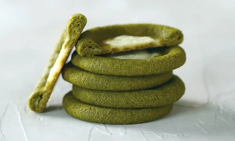 ホワイト生チョコレートを宇治抹茶サブレで包んだ、しっとりやわらかなサブレ。