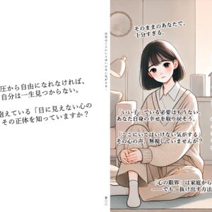 また、実生活で試行錯誤をしながら、家族との関係をより良いものにしていく一助となることを願っています。この本があなたの日々の心の支えになったのであれば、それ以上の喜びはありません。最後に、読んでみた感想や気づきがあれば、レビューとしてシェアしていただければと思います。あなたの感想は、今後のより良い本作りへの貴重なヒントになりますし、次の読者にとっても役立つでしょう。
