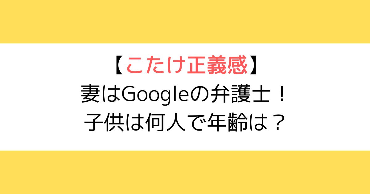 今回は、こたけ正義感さんのGoogleの弁護士の妻と、子供の年齢や人数や年齢についてまとめました。