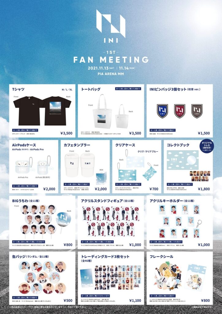 この6品はJO1、INIのファンミーティングやライブでは人気商品のため間違いなく販売されるでしょう!