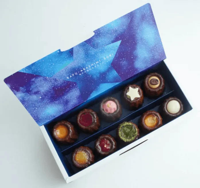 パイナップルや珈琲、島いちごなどさまざまな味が箱の中に集結しています。