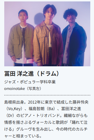 福島智朗さん、富田洋之進さんは髭男の小笹大輔さんと高校時代にバンドを組んでました。