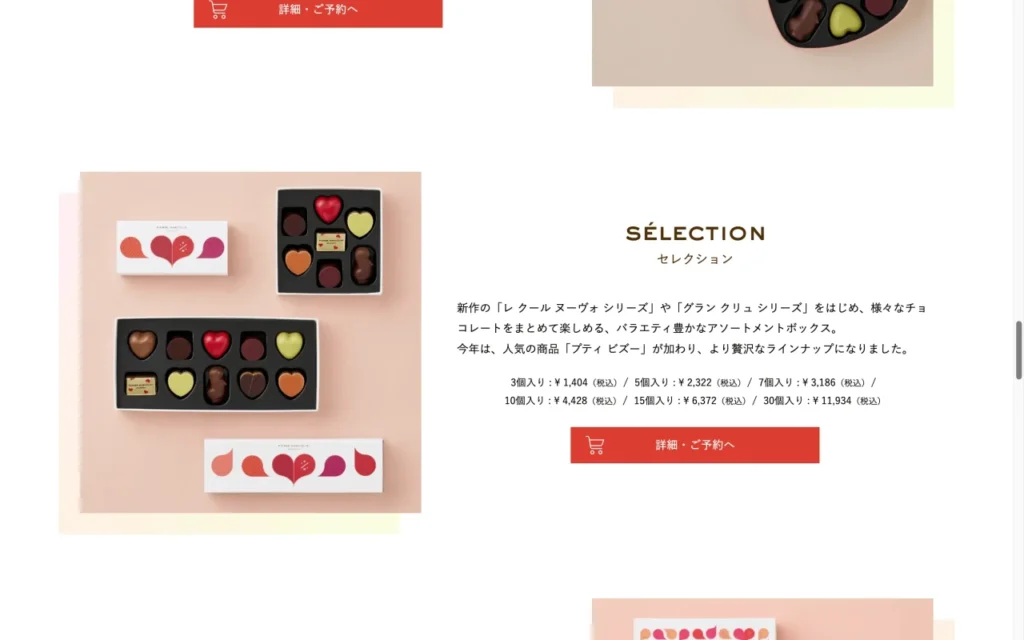 ピエールマルコリーニバレンタイン2024では、先行予約を公式オンラインのみで行なっています。