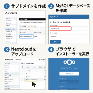 - ファイル保存:Nextcloudのサーバ内