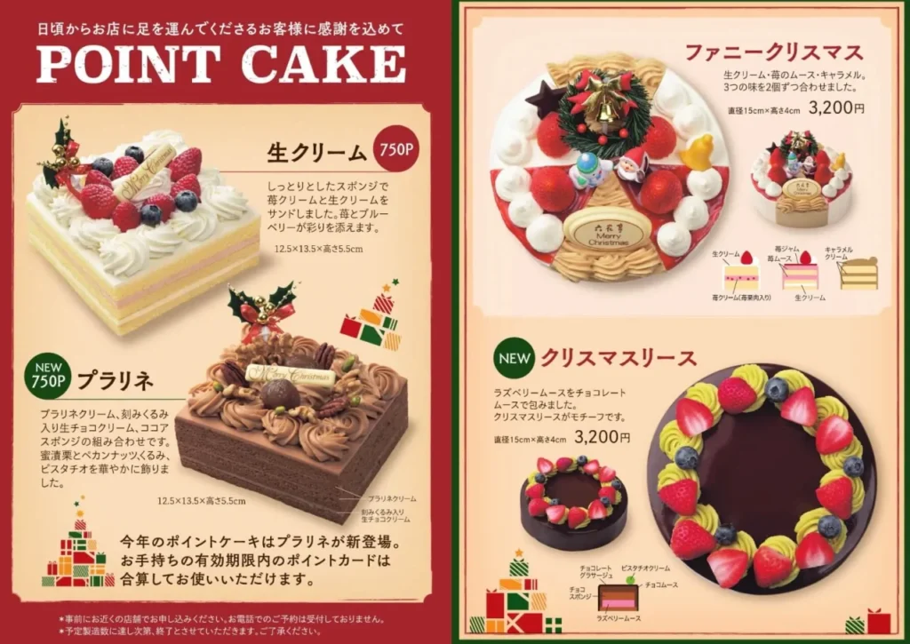 ①店舗専用のポイントを750ポイント使うことで予約できる特別なクリスマスケーキ