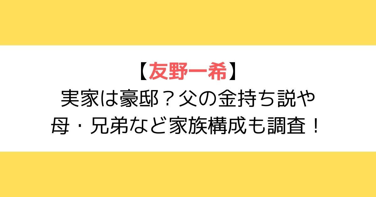そこで友野一希さんの実家は豪邸か?友野一希さんの父親はお金持ちなのか、母親や兄弟など家族構成も調査しました!