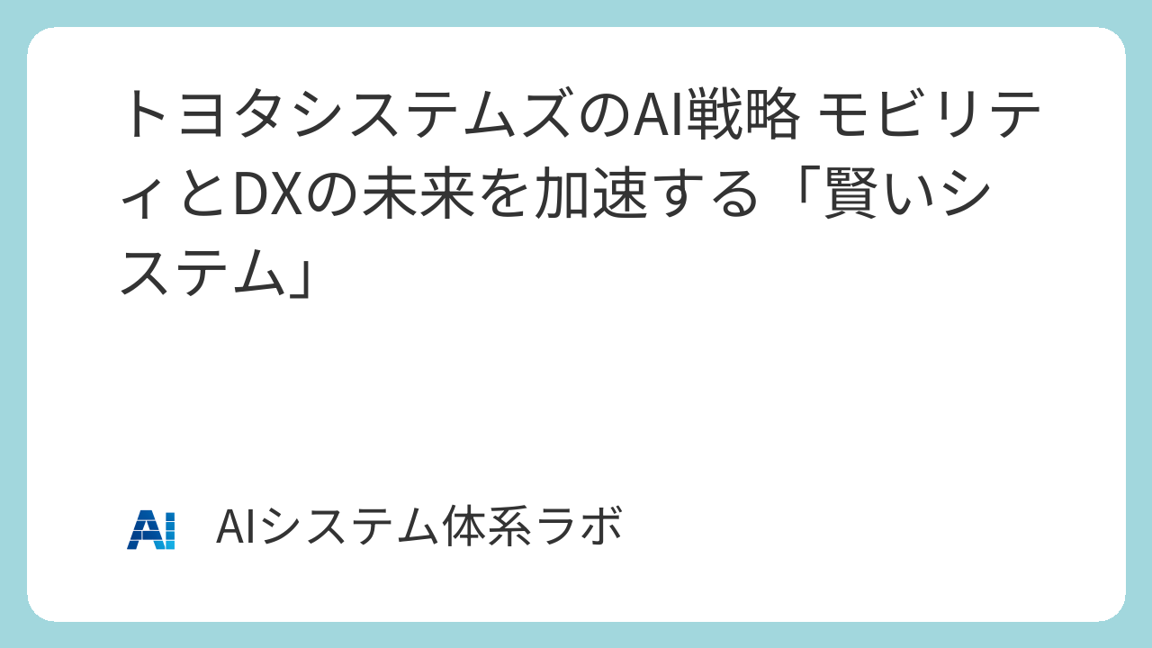 日本の基幹産業を支えるトヨタグループにおいて、AIが単なる技術ではなく、競争力そのものを高める「賢いシステム」として活用されている事例は、多くの企業にとって示唆に富んでいます。AIシステム体系ラボは、日本のAI実装の最前線を引き続き分析していきます。