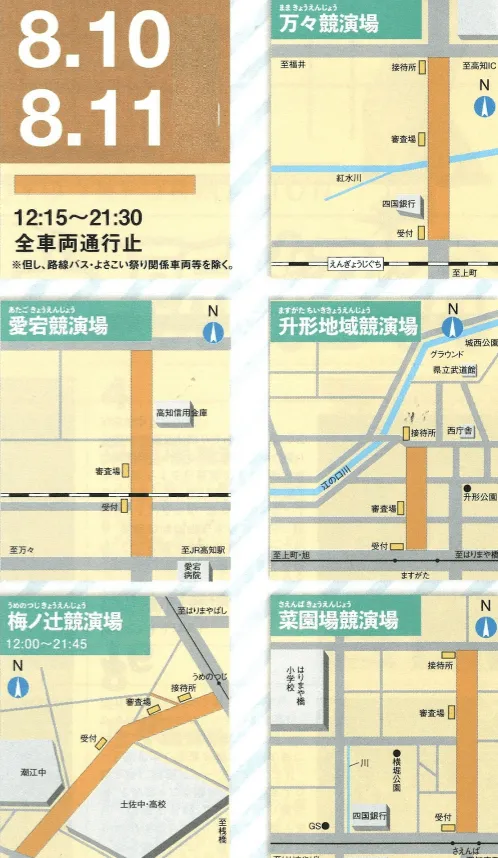 高知城、高知県庁を中心に大幅な規制、各競演場の万々(まま)競演場、愛宕競演場、枡形地域(ますがたちいき)競演場、梅の辻競演場、菜園場競演場は交通規制がありましたので注意してくださいね。