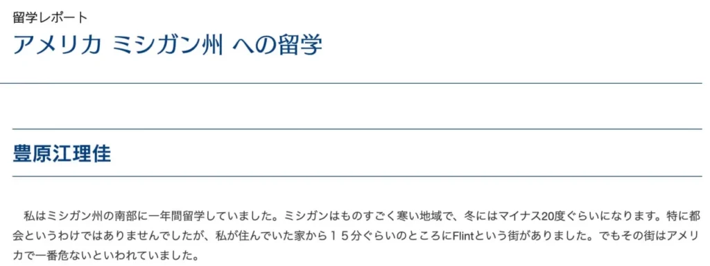 豊原江理佳さんは後にも紹介しますが、高校時代に1年間アメリカ・ミシガン州に留学されていました。