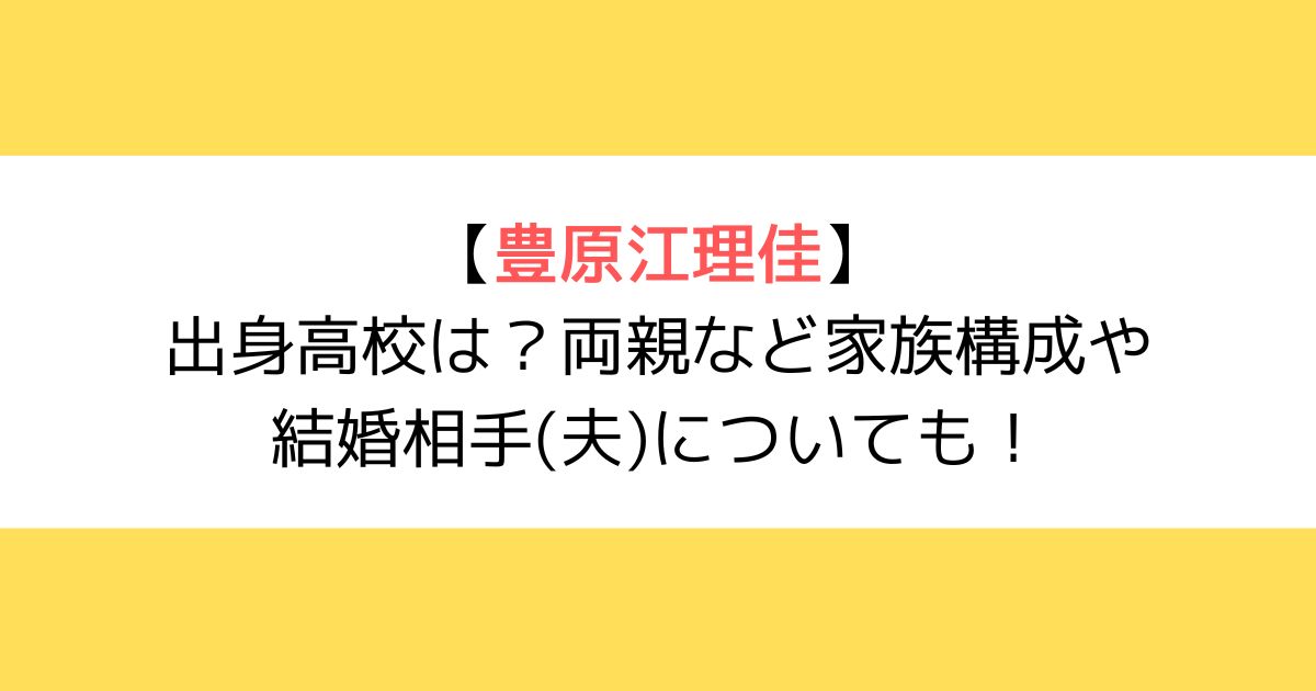 豊原江理佳さんの出身高校、ご両親など家族構成や結婚相手(夫)についてまとめました。